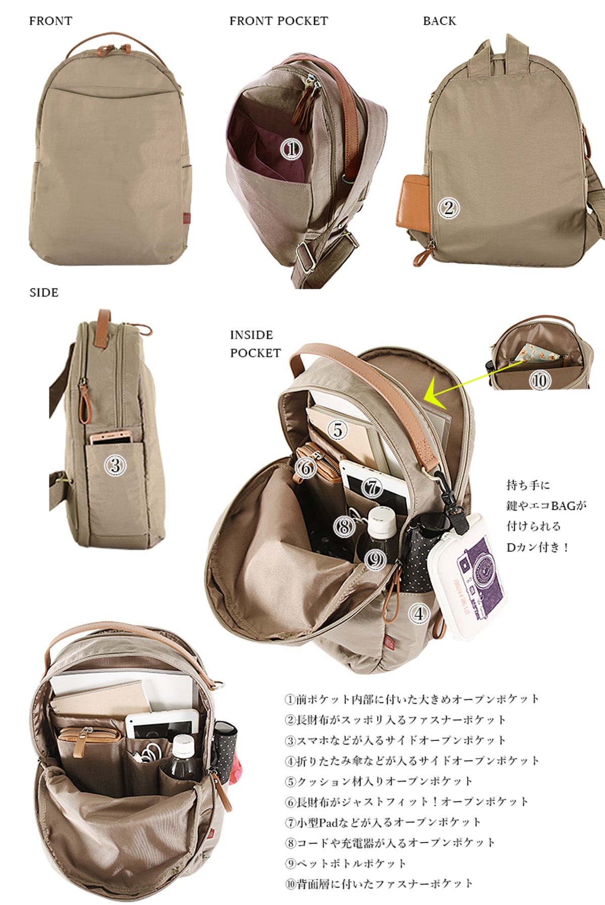 多機能シワナイロンデイリュック